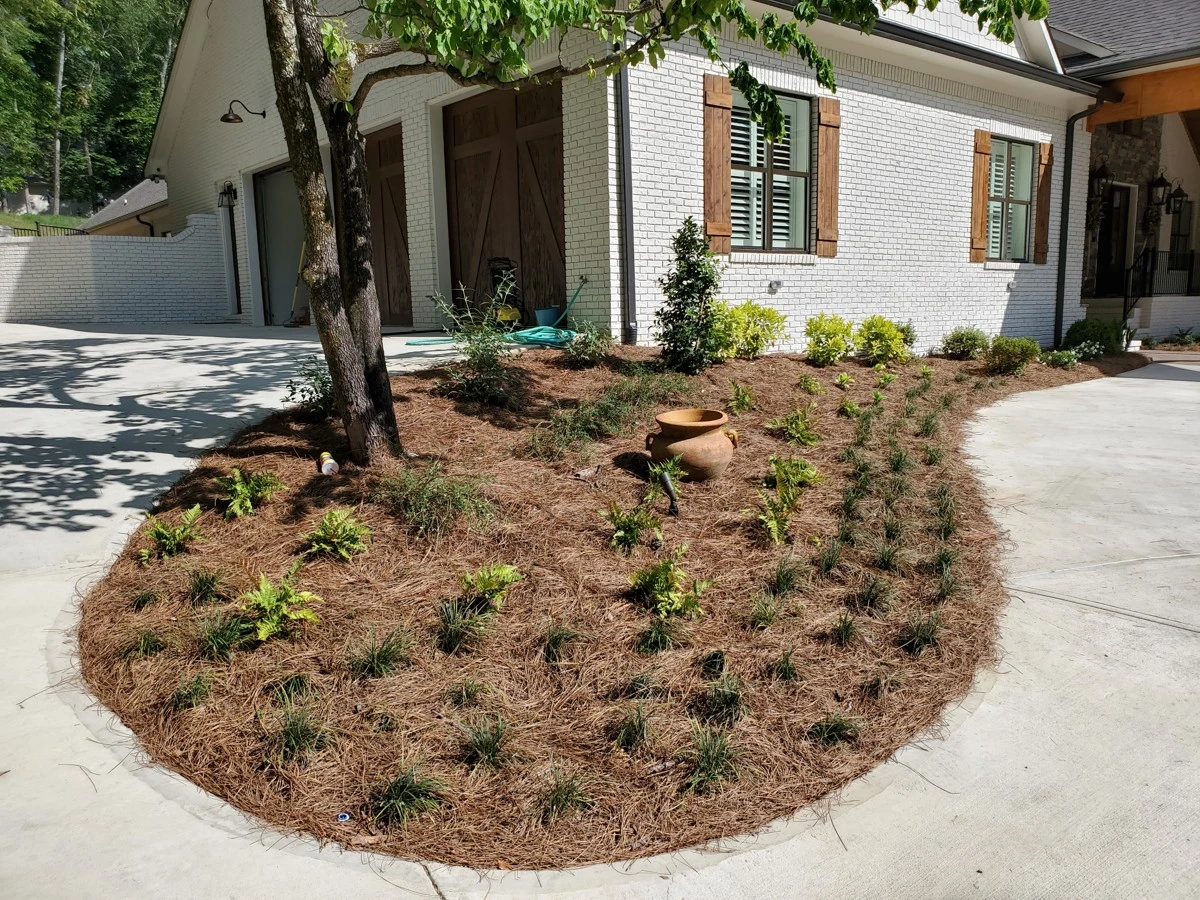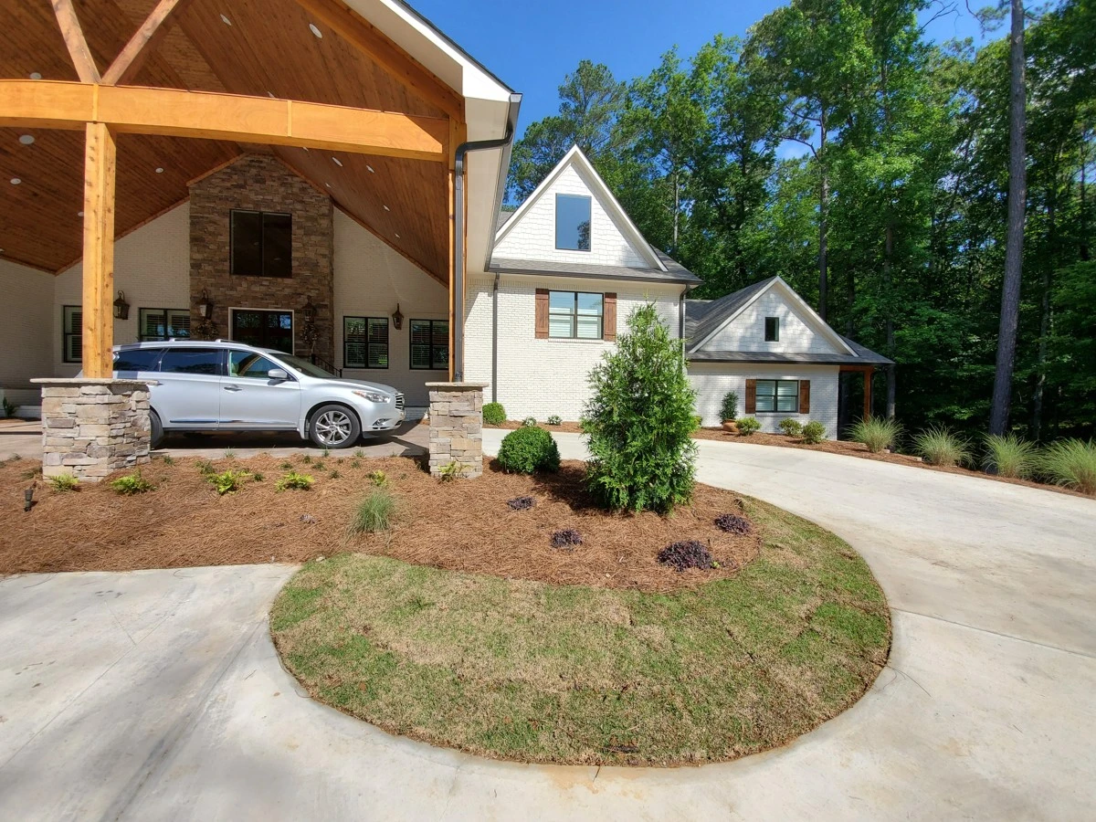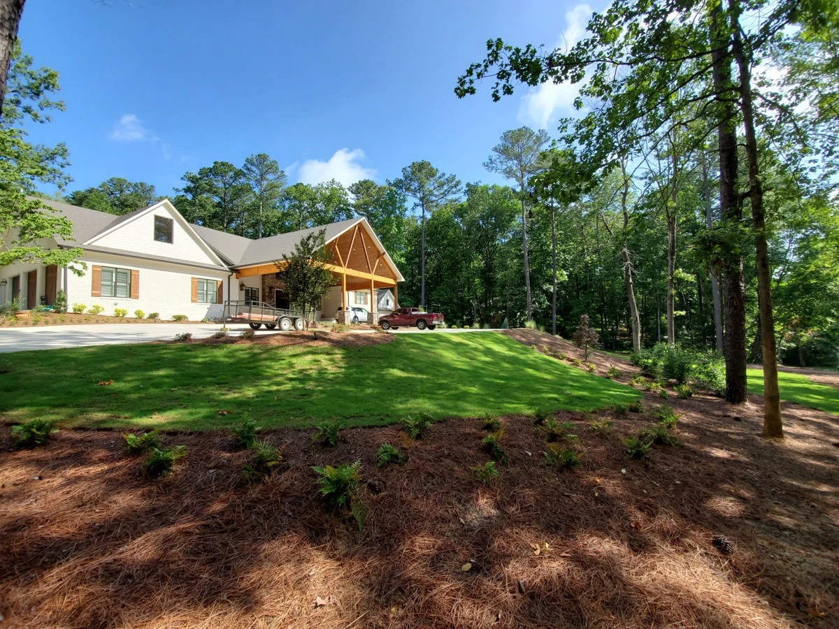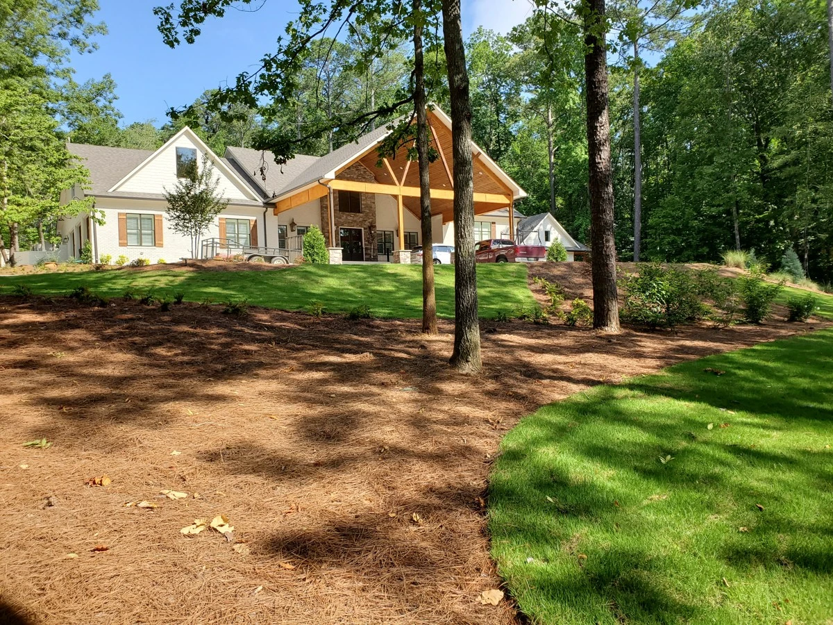 Dirtworks And Bobcat Service landscaped the entire surrounding of this beautiful home in Indian Springs, Al.