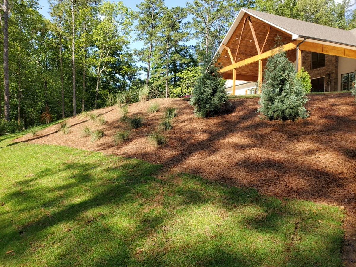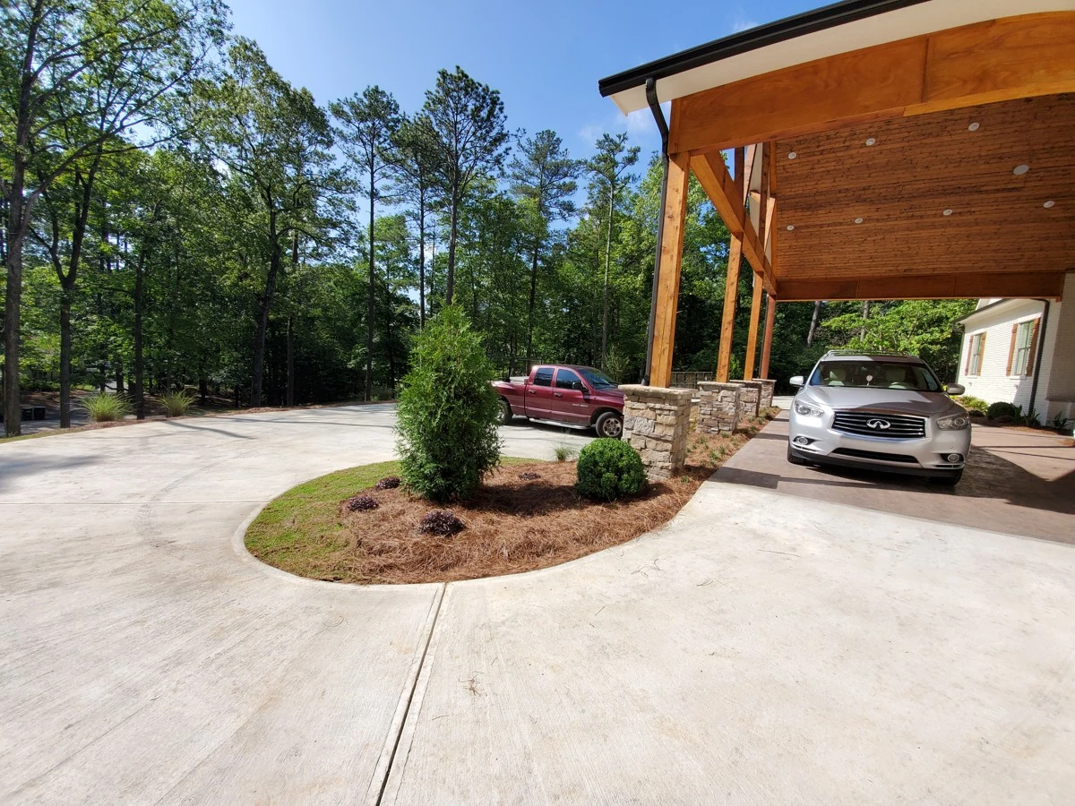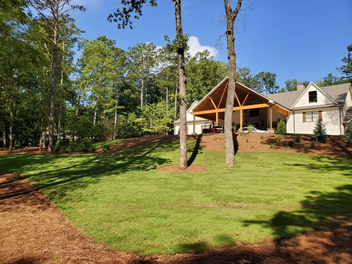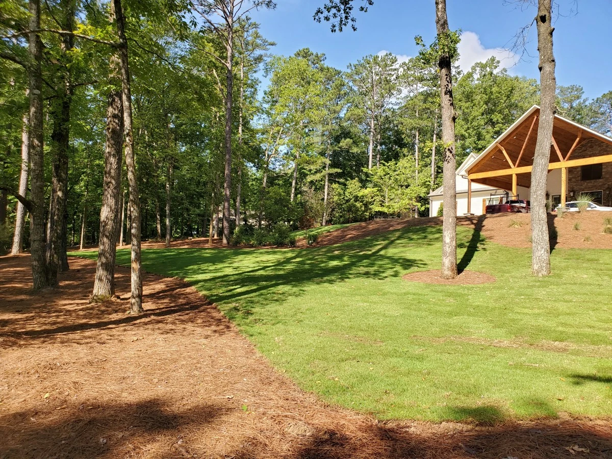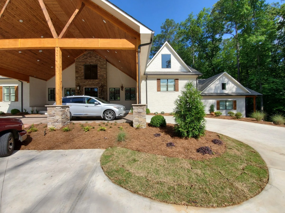 Dirtworks And Bobcat Service landscaped the entire surrounding of this beautiful home in Indian Springs, Al.