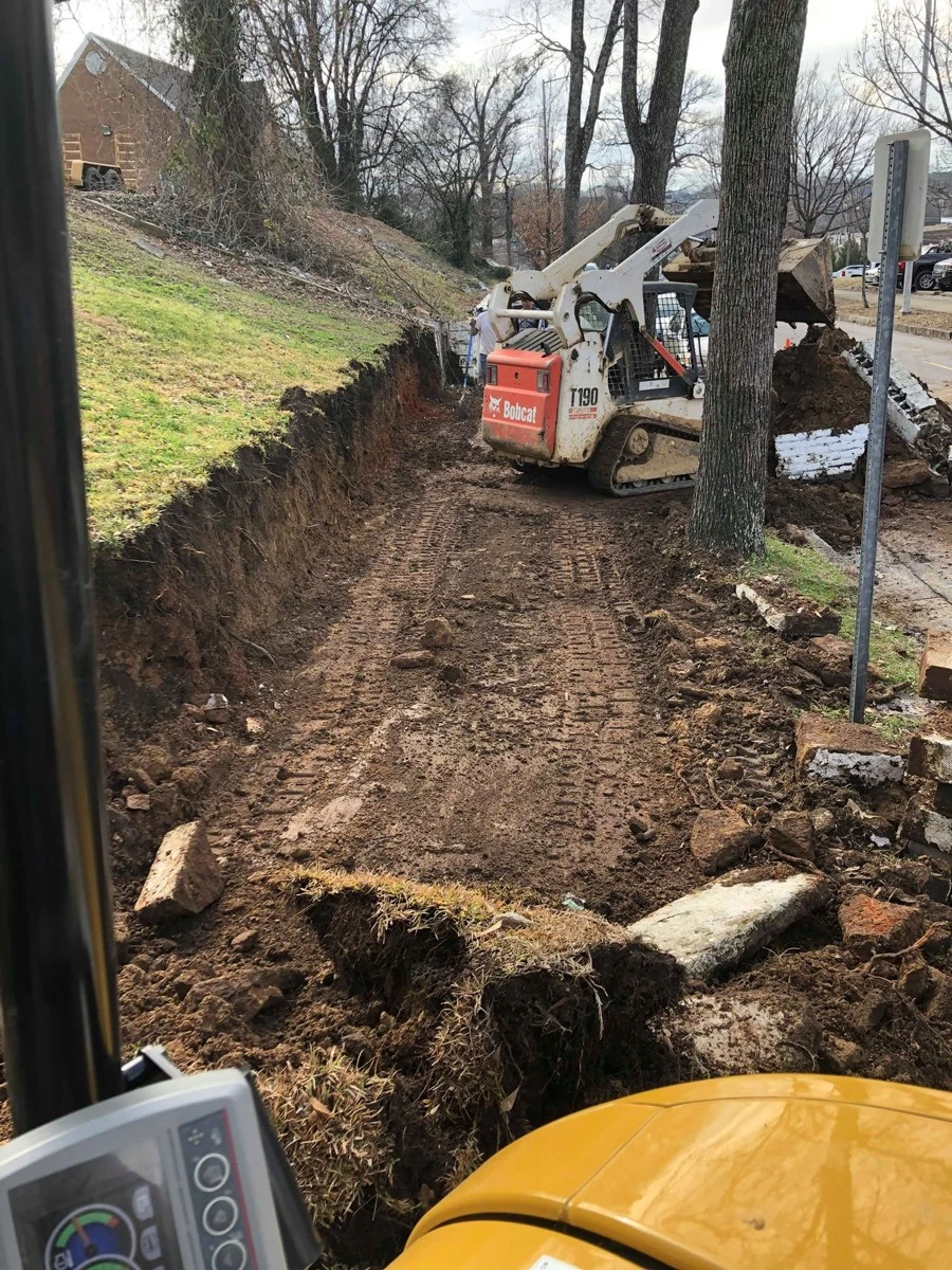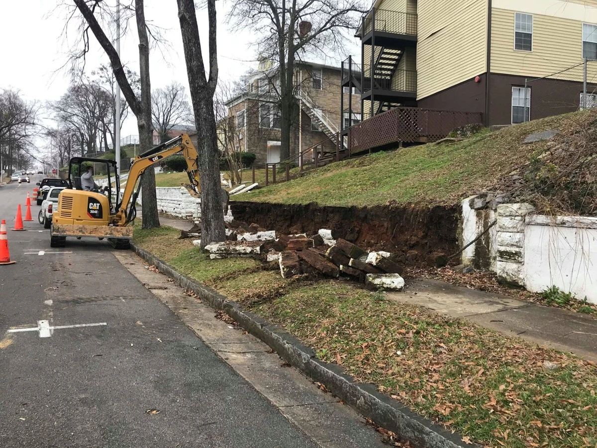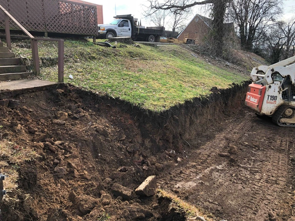 Dirtworks and Bobcat Service removed the old retaining wall and installed new GEOSTONE wall in Birmingham Alabama.
