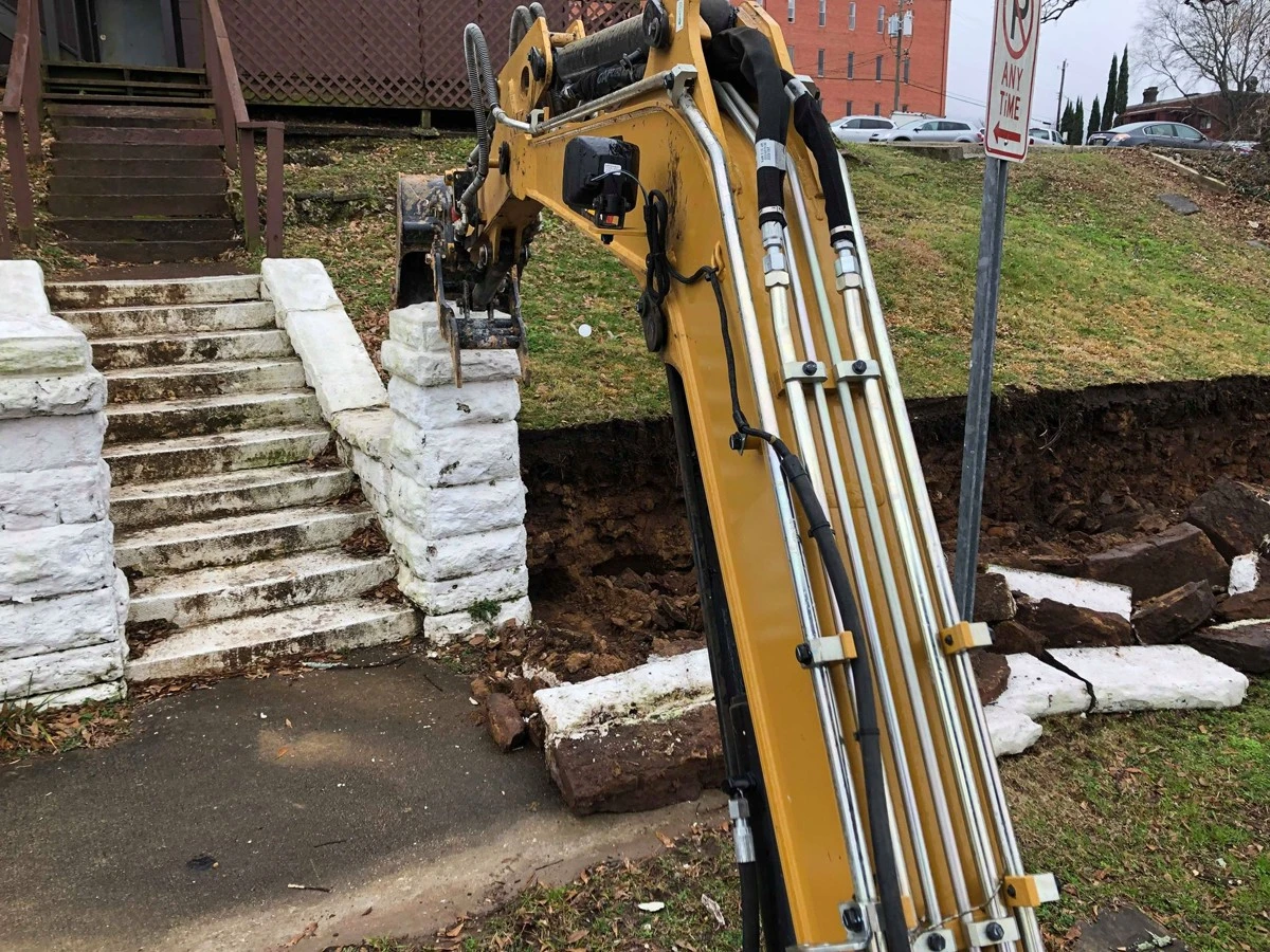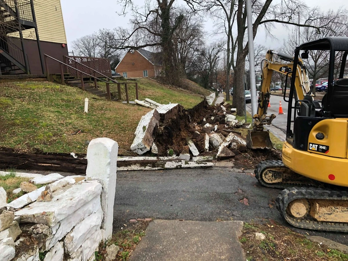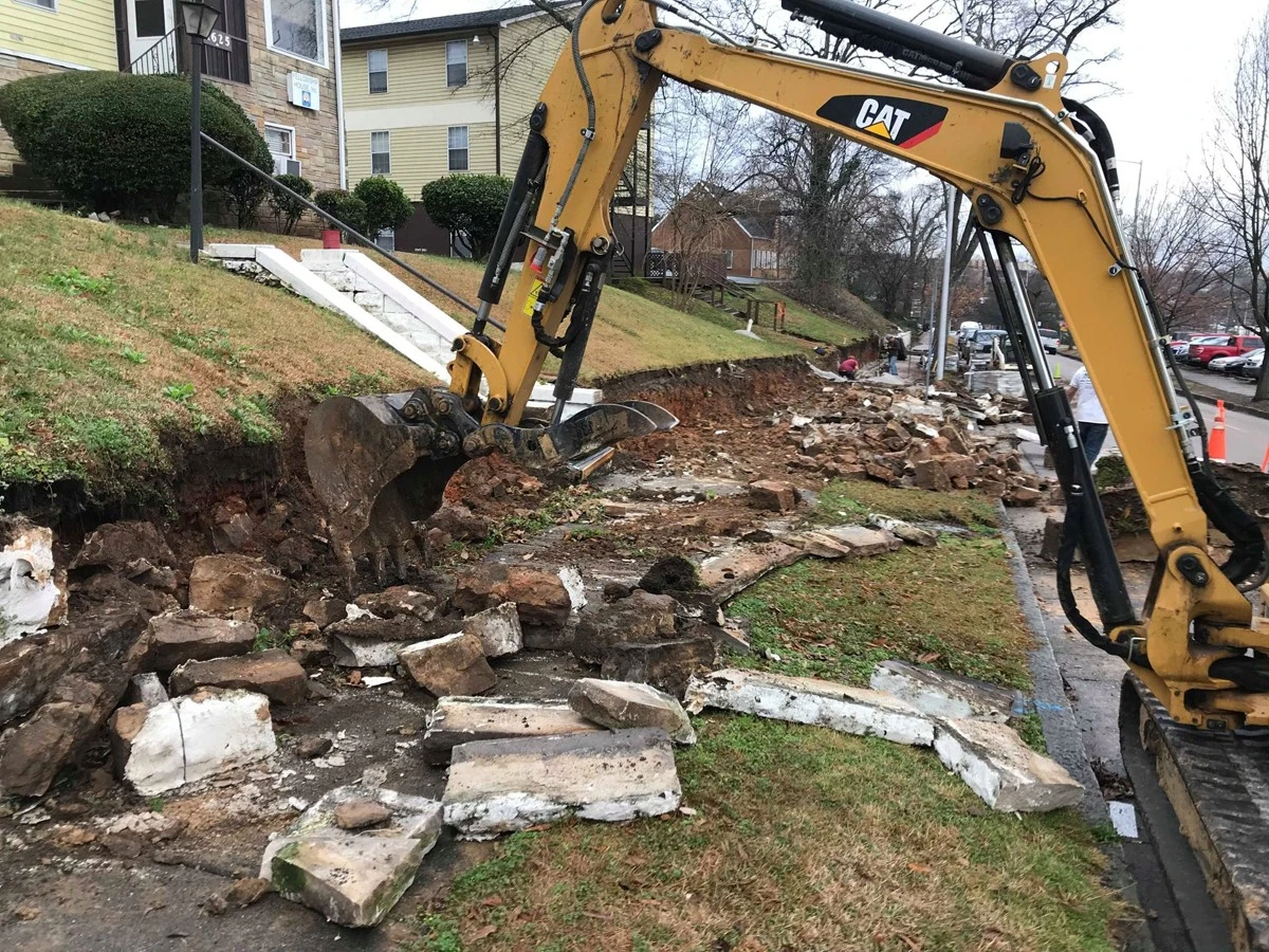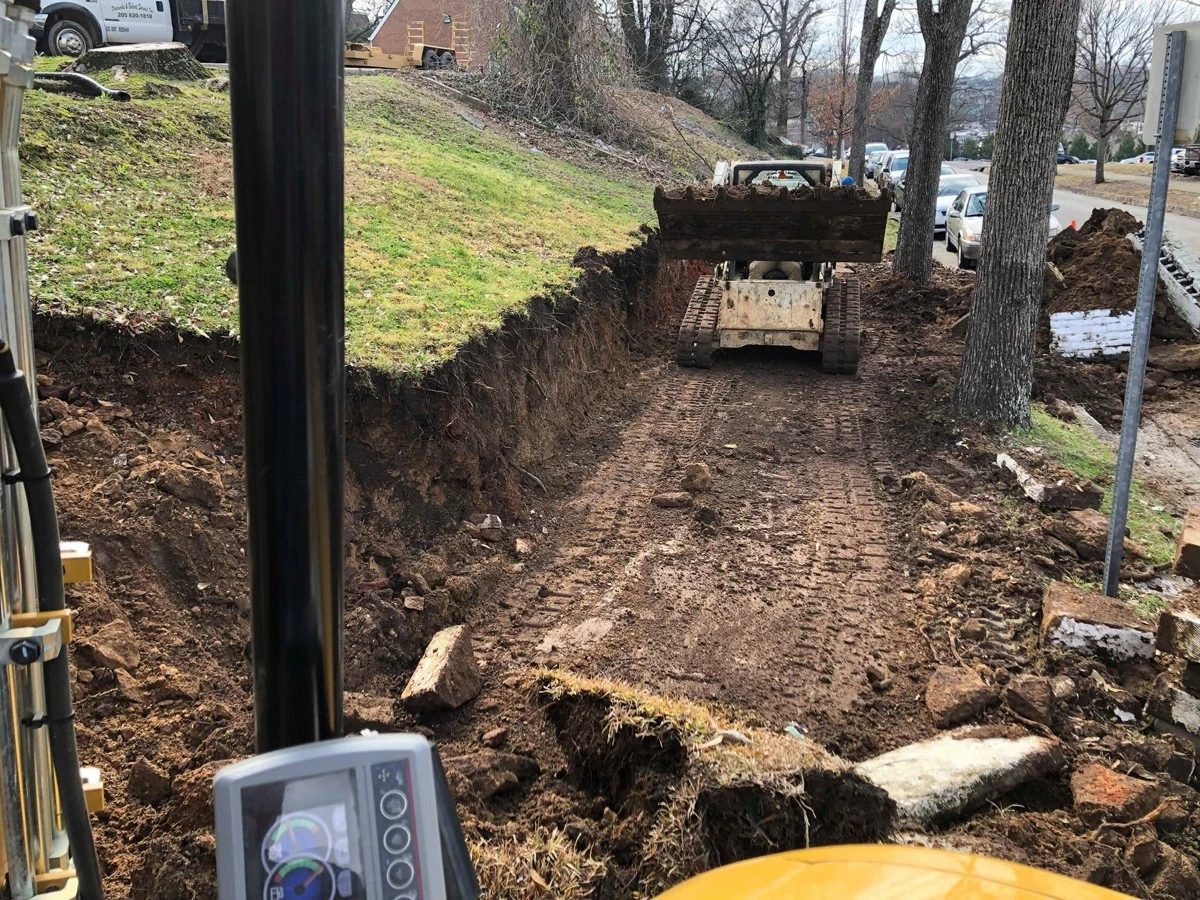 Dirtworks and Bobcat Service removed the old retaining wall and installed new GEOSTONE wall in Birmingham Alabama.