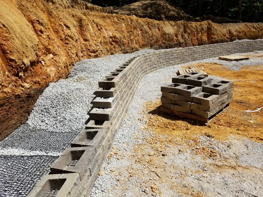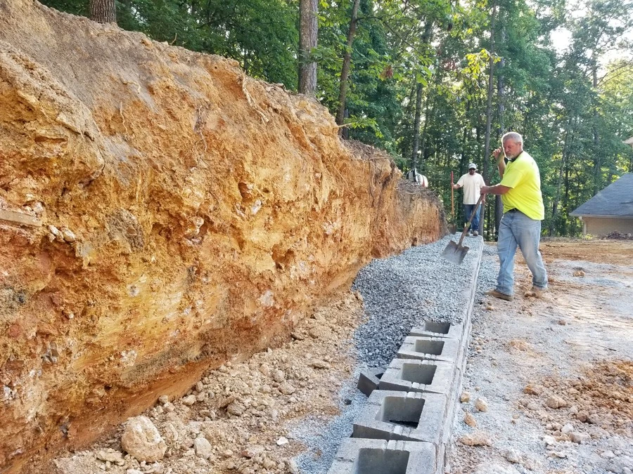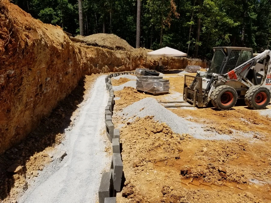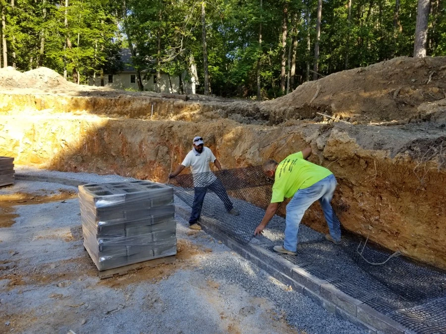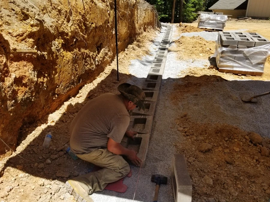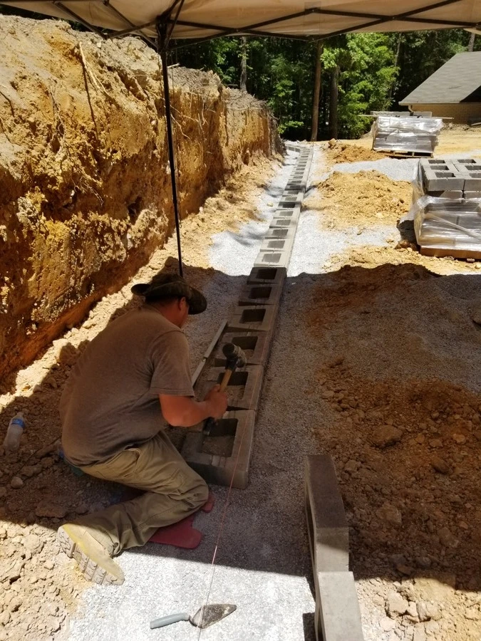 The following is an example of a typical retaining wall installation. This wall was built in Indian Springs, Al in summer 2018.