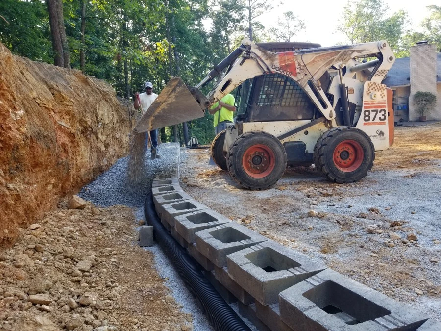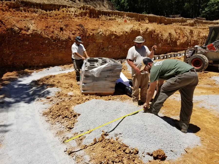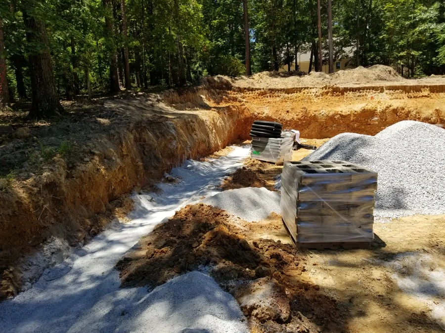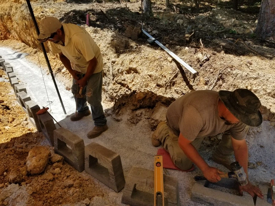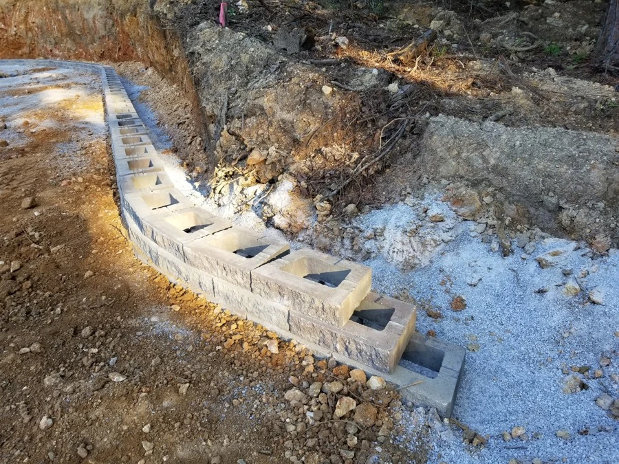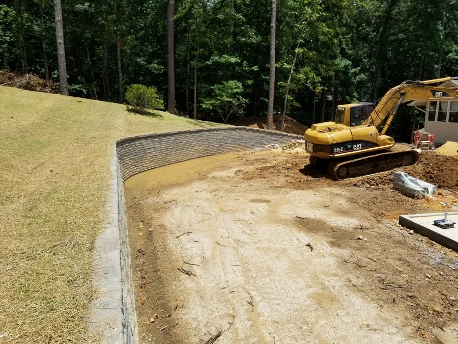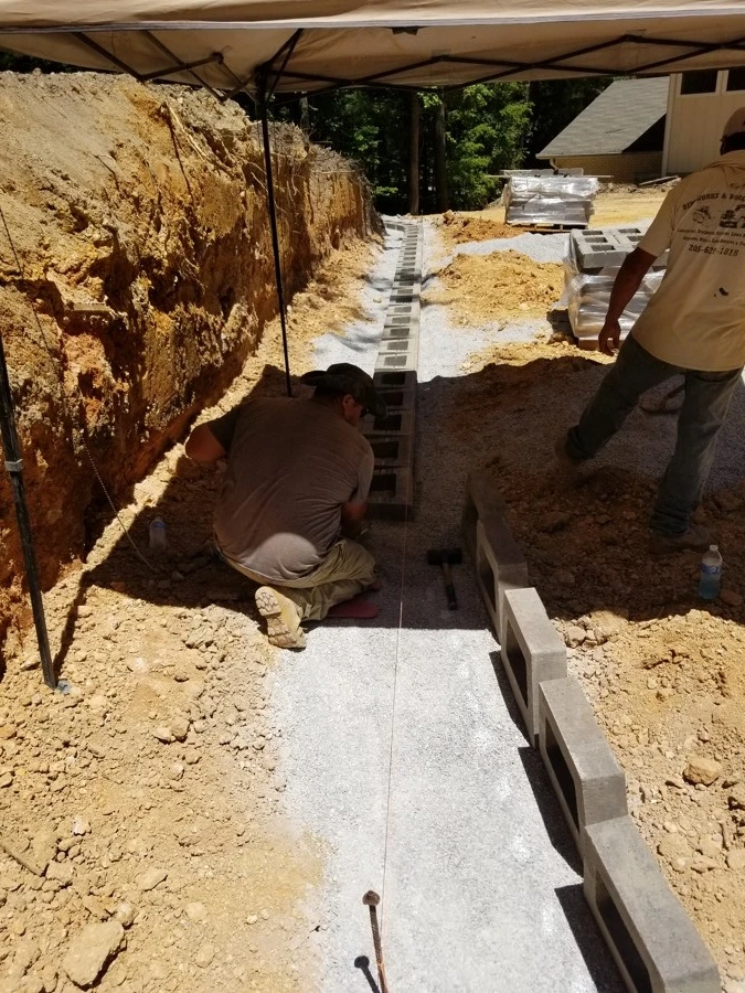 The following is an example of a typical retaining wall installation. This wall was built in Indian Springs, Al in summer 2018.