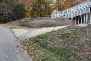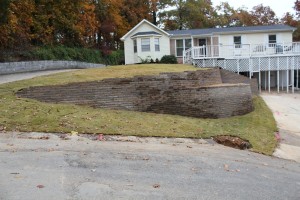 Dirtworks installed a 4 zone irrigation system with an electronic timer and electronic valves. The irrigation system waters grass on the top and bottom sides of the new wall and also waters new plants which will be installed later. The irrigation system is covered by 1 year warranty from the date of installation.